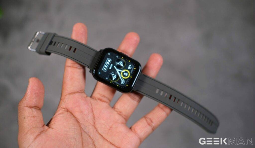 The build quality of the smartwatch is good and definitely the best in this price segment. On the right side, there is a single button that can be used as a power button and back button. You can wake the screen with a lift-to-wake gesture or by pressing the button.